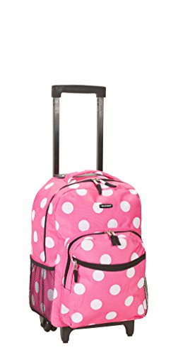 Rockland Luggage 17 Inch Rolling Backpack, Pink Dot, Medium