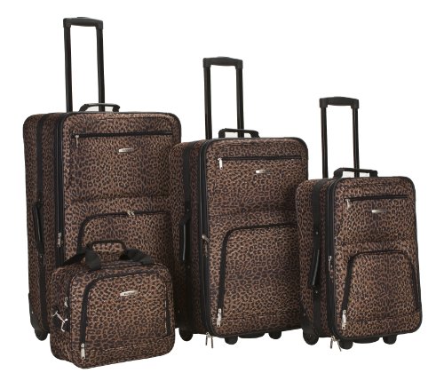 Rockland Luggage 4 Piece Luggage Set, Brown Leopard, Medium