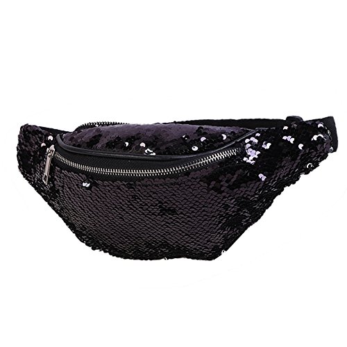Sequin Fanny Pack for Women – Colorful Glitter Waist Bags with Adjustable Strap (Black)