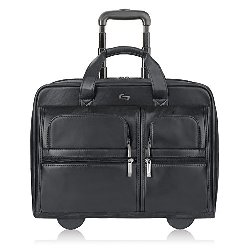 Solo New York Franklin Rolling Laptop Bag. Premium Leather Rolling Briefcase for Women and Men. Fits up to 15.6 inch laptop – Black