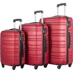 FLIEKS Luggages 3 Piece Luggage Set Spinner Suitcase (Red)