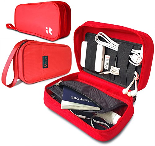 Travel Cord Organizer – Electronics Accessories Case & Travel Document Organizer – Packing Cubes (Hand Red)