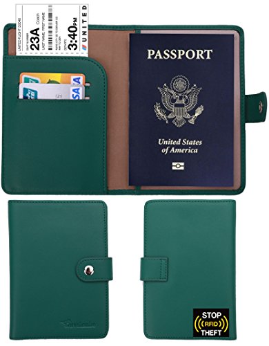Travelambo RFID Blocking Leather Passport Holder Wallet Cover Case Wing Pocket(green)