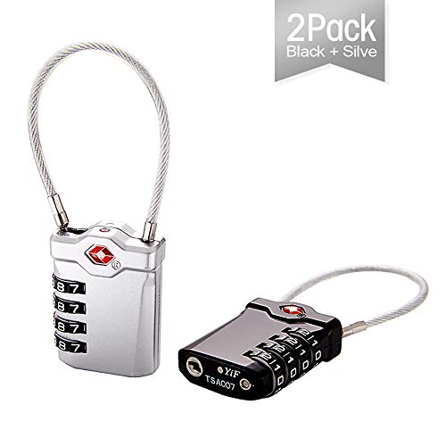 TSA Approved Travel Combination Cable Luggage Locks for Suitcases 2 Pack( Black+Silver)