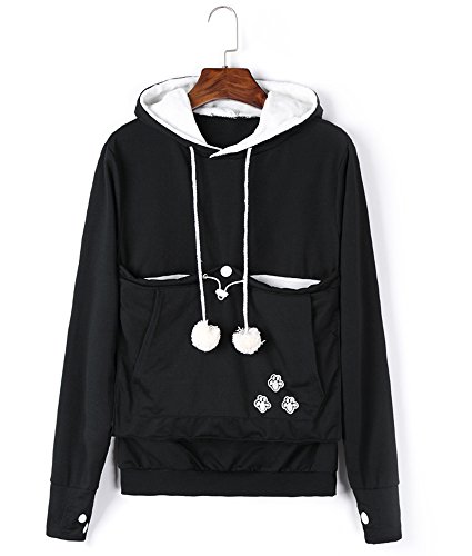 Unisex Cat Ear Big Kangaroo Pouch Hoodie Long Sleeve Pet Cat Dog Holder Carrier Sweatshirt (XXXL, Black)