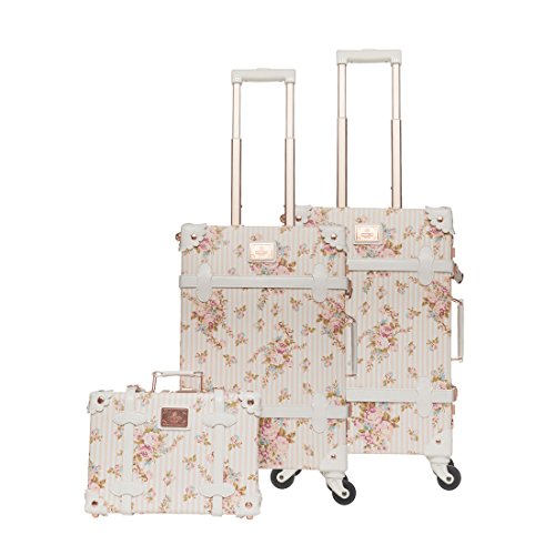 UNIWALKER 13″ 20″ 26″ Women Floral Pu Leather 3 Pieces Travel Luggage Set (Beige)