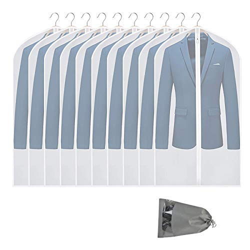- Value Meals:10 Pieces 24″ x 40″ Hanging suit/garment bag + 1 Piece free shoes bag. these 10 garment bags can protect your clothes from dust, moth, damp and pets hair, keeping all your favarite/off season clothes, cashmere fresh and wrinkle free.